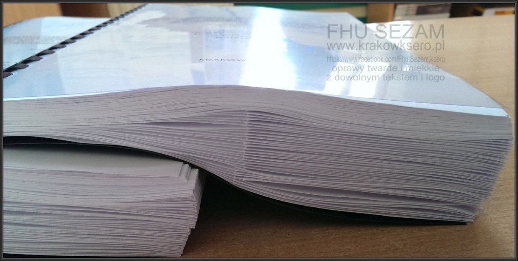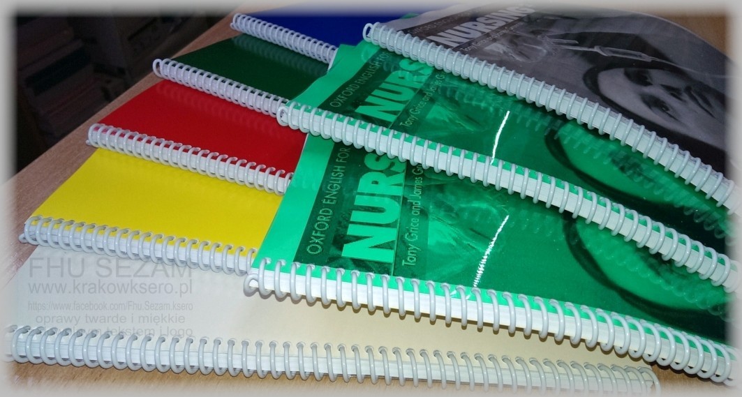 Wiele zastosowań - najbardziej popularne. Dostępne różne kolory grzbietów. Można zbindować do 500-set kartek. Przód folia z tyłu karton.