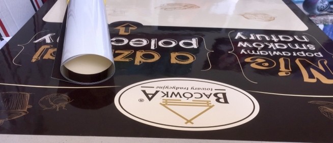 Przykład foliowania błysk A2. Papier został zabezpieczony z obydwóch stron folią połyskową o grubości 36 mic. Dzięki czemu wydruk jest odporny na warunki atmosferyczne.