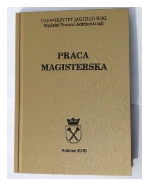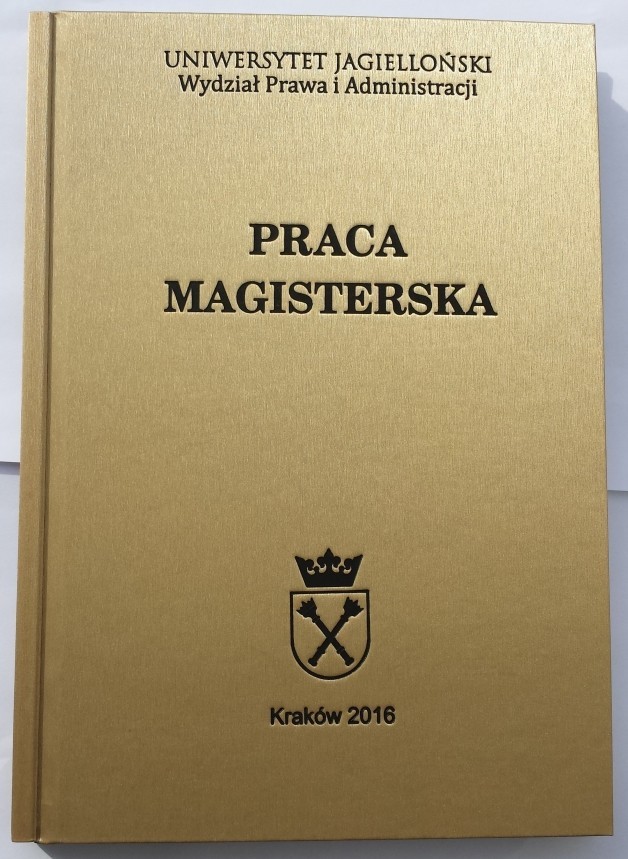 Okładka złota z napiem praca magisterska. Napisy tłoczone w kolorze czarnym. Dostępne inne kolory napisów.